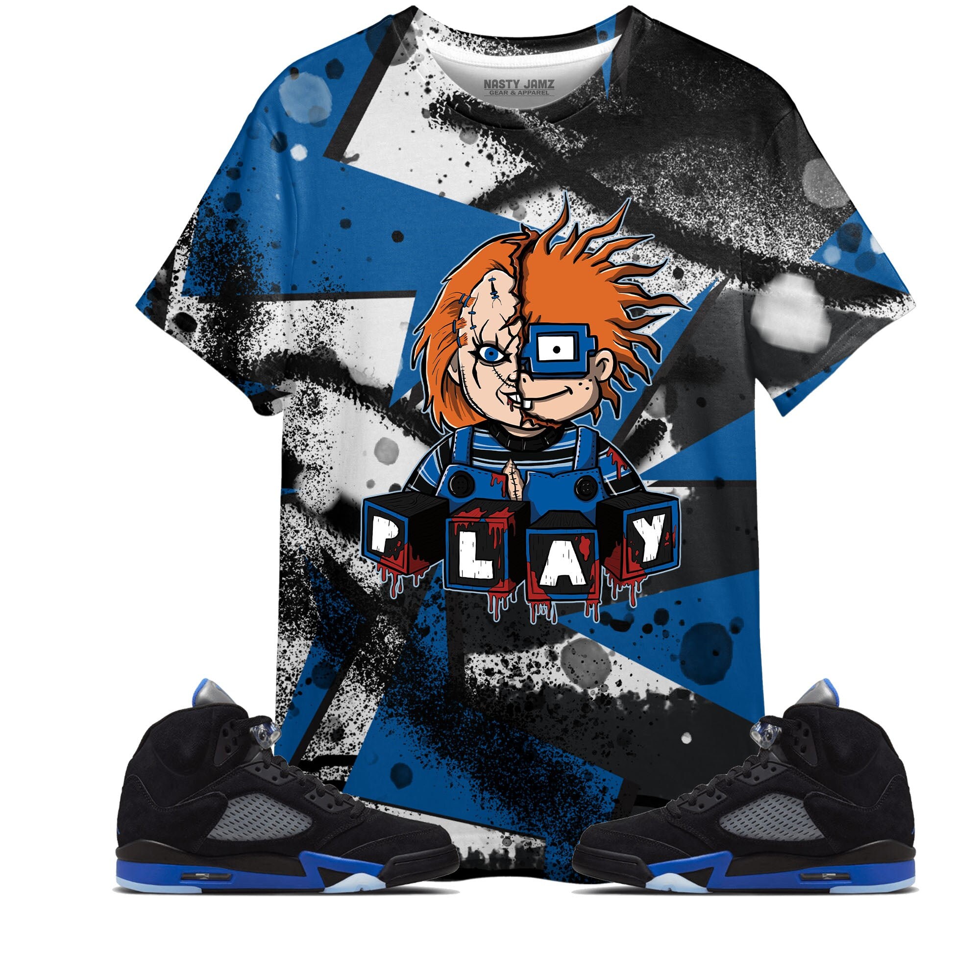 Jordan 5 Racer Blue Sneaker Tees Match Retro 5 Black Racer Blue Shoes